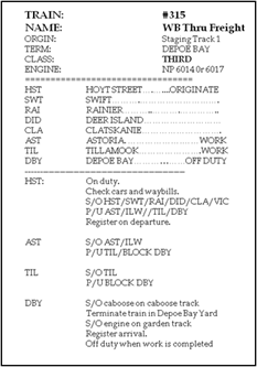 Each train has a card with instructions for that train’s work.