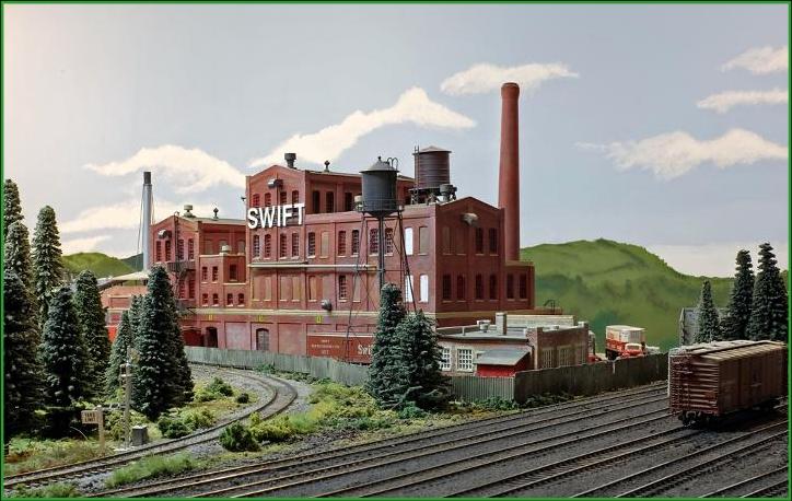The Swift Meat Packing Plant was modeled to be a large industry worthy of rail traffic. The industry was inspired by Doug Harding's two-part article in the October and November 2004 issues of Railroad Model Craftsman. |
