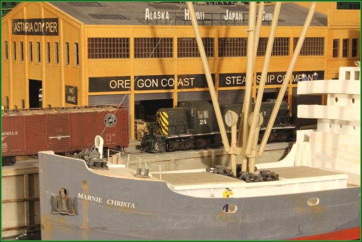 Astoria is a Pacific Ocean port. Industries include an import/export terminal, a grain terminal and a railroad car float which runs between Astoria and Ilwaco, Washington. Log trains from the mountains around Astoria also pass through en route to the mill in Tillamook.